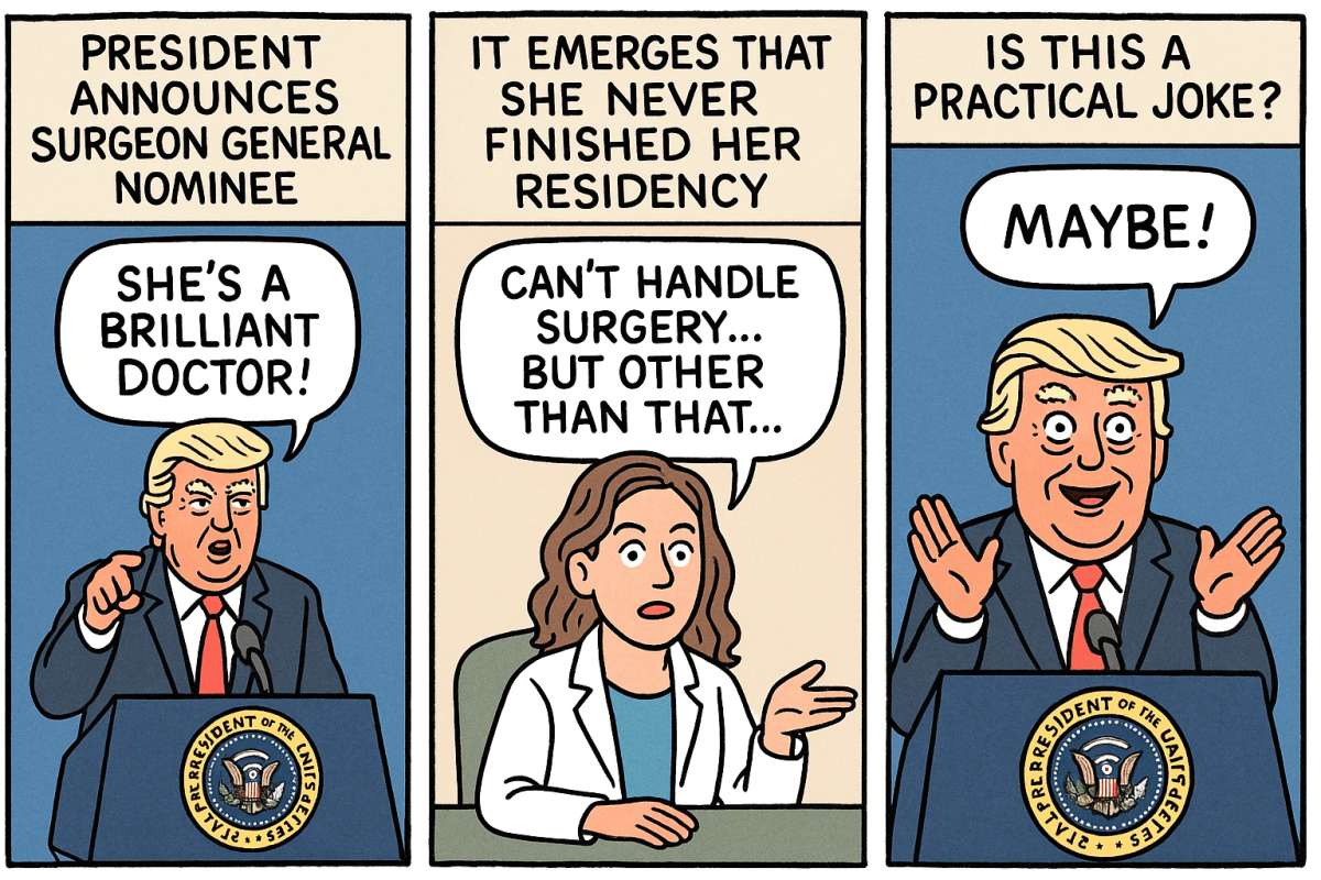 In a bold attempt to answer the question “What even is credibility anymore?” the President nominated a former ENT surgery resident turned wellness influencer to be the next Surgeon General.
